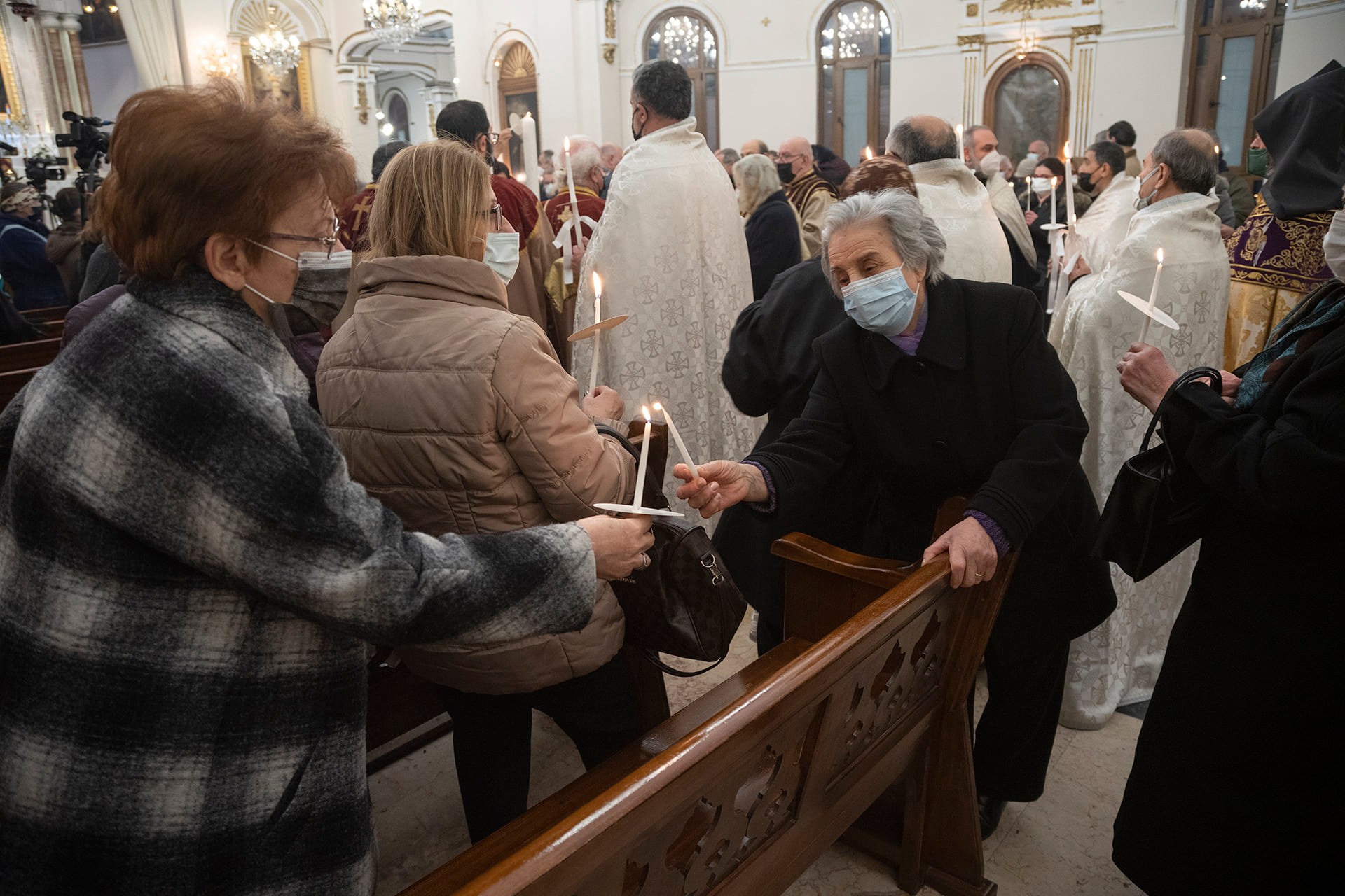 Ն.Ա.Տ. Սահակ Բ. Պատրիարք Հայրը, 13 Փետրուար 2022, Կիրակի երեկոյեան Տեառնընդառաջի նախատօնակին նախագահեց Ֆերիգիւղի Ս. Վարդանանց Եկեղեցւոյ մէջ։