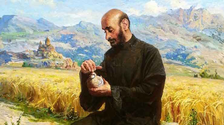 Վերջապէս նրա տանջուած մարմինը հանգիստ էր գտել: Հոգեւոր մեղեդիներ էին երգում նրա վրայ: Ա՛հ, եթէ յանկարծ կարողանար վեր կենալ դագաղից, լսել ինչ են երգում, ինչպէ՛ս են երգում: Այդպէ՞ս կ՛երգէր ինքը: Ով լսել էր նրա «Ի վերին Երուսաղէմ»-ը, չէր կարող սարսուռ չզգալ Փարիզի հայոց եկեղեցում, Կոմիտասի դագաղի մօտ: