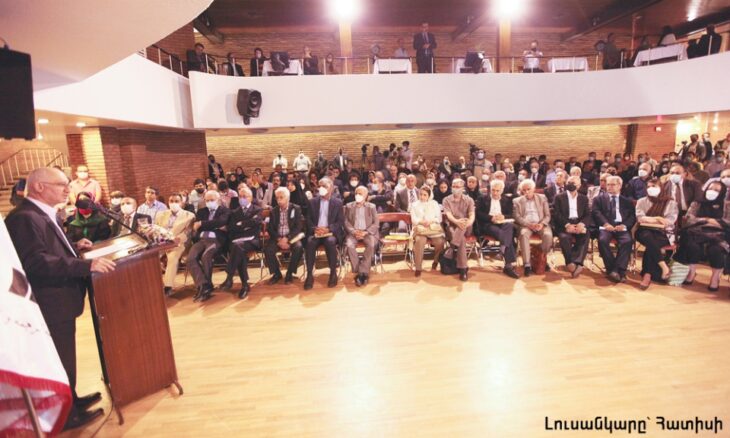 Ահաւասիկ, քովիտի պատճառով երկամեայ ընդմիջումէ ետք, Մայիս 10-ի երեկոյեան, ՀՈՒՍԿ-ի նախաձեռնութեամբ կազմակերպուած էր բանախօսական-գեղարուեստական ձեռնարկ Հայոց Ցեղասպանութեան 107-րդ տարելիցին առիթով, ոչ-հայ լսարանի համար, Հայ Հասարակական միութեան (Հայ ակումբի) դահլիճին մէջ: Ձեռնարկը, որ իրենց ներկայութեամբ պատուած էին Իսլ. խորհրդարանի Զրադաշտներու պատգամաւորը, ասորիներու ներկայացուցիչը, Իսլ. Մշակոյթի եւ առաջնորդութեան նախարարութեան կրօնական փոքրամասնութիւններու յարակից բաժիններու եւ քաղաքապետարանի ներկայացուցիչներ, Իրանում ԻԿՕՄ-ի նախագահը, Թ. Հ. Թ. Պատգամաւորական ժողովի, Թեմական խորհուրդի ատենապետներ, «Ալիք» հաստատութեան եւ ազգային մարմիններու, միութիւններու եւ կառոյցներու ներկայացուցիչներ, Իրանի քաղաքական ու մտաւորական շրջանակներ եւ մեծ թիւով լրագրողներ, մեկնարկեց Իրանի պետական հիմնով: Հայ Դատի խօսքը պարսկերէնով ներկայացուց Սարինէ Թորոսեանը, որ ընդգծեց, որ իրանցիները առաջին ազգերէն էին, որոնք նոյնինքն Ցեղասպանութեան տարիներուն, շնորհիւ իրանցի մտաւորականներու եւ դիւանագէտներու, հարցին իրազեկ դարձան եւ Իրանը դարձաւ ապահով ապաստարան Ցեղասպանութենէն ճողոպրածներու եւ ապաստանեալներու համար եւ Իրանի մէջ հայերու եւ իսլամներու ու բոլոր իրանցիներու խաղաղ գոյակցութիւնը լաւագոյն վկան է պատմական այս իրողութեան: Ան, ապա, անդրադարձաւ Թուրքիոյ միջոցով ներկայ ժամանակահատուածին եւս շարունակուող պանթուրքիստական նկրտումներու, ի մասնաւորի 2020 թուականին ահաբեկչական խմբաւորումներու Պաքու փոխադրելով եւ սիոնիստական վարչաձեւի հետ յարաբերութիւններուն եւ Արցախի բռնագրաւուած տարածքներու եւ Իրանի կից սահմաններու մէջ սիոնիստական նոր ռազմայենակներու կառուցման, ատիկա սպառնալիք համարելով Իրանի եւ Հայաստանի անվտանգութեան համար: Ձեռնարկին ընթացքին ցուցադրուեցաւ փաստավաւերագրական տեսաֆիլմ Հայոց Ցեղասպանութեան եւ դիւանագիտական յետագայ զարգացումներուն մասին: Ծրագիրը յագեցած էր բանախօսութիւններով: Մոհամմատ Պաղեր Ամիրանին, իբրեւ առաջին բանախօս հակիրճ պատմական ներկայացնելով, կարեւոր համարեց Թուրքիոյ դէմ տնտեսական պոյքոթի արշաւը: Աթուսա Սամիին, ով «Նեշանէ» հրատարակչութեան տնօրէնն է եւ ունի բազմաթիւ թարգմանութիւններ՝ անգլերէնէ-պարսկերէնի, ինչպէս՝ Հայաստանի Հանրապետութեան երկհատոր գիրքը, ներկայացուց իր վերջին թարգմանութիւններէն՝ Թաներ Աքչամի գրչին պատկանող «Ցեղասպանութեան հրահանգը» գիրքը, որուն շնորհանդէսը կատարուած է ժամանակին: Իրանի գէօպոլիտիկ ուսումնարանէն Աֆշին Մոթաղին իր ելոյթի ընթացքին դատապարտելով Հայոց Ցեղասպանութիւնը, հիմնարկի պատրաստակամութիւնը յայտնեց Ցեղասպանութեան հարցով ՀՈՒՍԿ-ի հետ համատեղ ձեռնարկներ իրականացնելու: Վերջին բանախօս հրաւիրուեցաւ Իսլ. խորհրդարանին մէջ Սպահանի եւ հարաւային իրանահայութեան պատգամաւոր Ռոպերթ Բեգլարեանը, որ անդրադառնալով պանթուրքիզմի եւ սիոնիզմի միմեանց կապակցող օղակներուն՝ կարեւոր համարեց ապագայի տեսլականով ծրագրամշակման անհրաժեշտութիւնը: