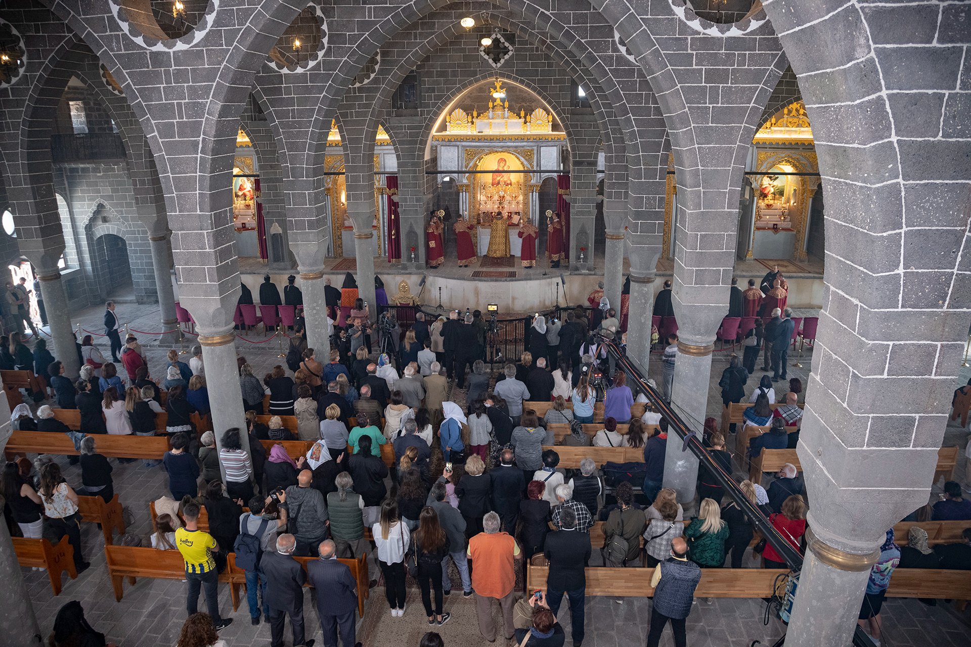 Ընդարձակ եկեղեցին ամբողջովին լեցուն էր այս պատմական պահը ապրելու փութացած ժողովուրդով։ Բազմերանգ պատկեր մը կը տիրեր տաճարին մէջ, քանի պոլսէն եկած ուխտաւորներու կողքին, բազմաթիւ սփիւռքահայեր, տեղացի ծպտեալ հայեր եւ պետական աւագանին պաշտպանելու համար դիրք բռնած թիկնապահներ կը լեցնէին տաճարը։