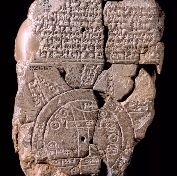 Հնագույն և ամենակարևոր աշխարհացույց քարտեզը մի փոքրիկ բաբելոնյան կավե սալիկ է՝ 8×12,5 սմ չափսերով, որը Լոնդոնի Բրիտանական թանգարանում է ցուցադրվում և համարյա ժամանակակից է Դարեհ Մեծի արձանագրությանը: