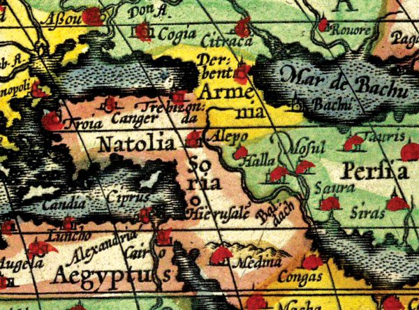 Միջնադարյան կարևոր քարտեզագիրներից էր հոլանդացի Աբրահամ Օրտելիոսը (1528-1598): Փոքր չափսերի պատճառով նա իր «Աշխարհացույց» քարտեզում նշում է միայն կարևոր երկրները: Եվրոպայում նշված են Հունաստանը, Իտալիան, Գերմանիան, Ռուսաստանը, Ֆրանսիան և «Անատոլիա» երկրամասը: Իսկ Կովկասի հարավում նա նշում է միայն Հայաստան, Սիրիա և Իրան երկրները: