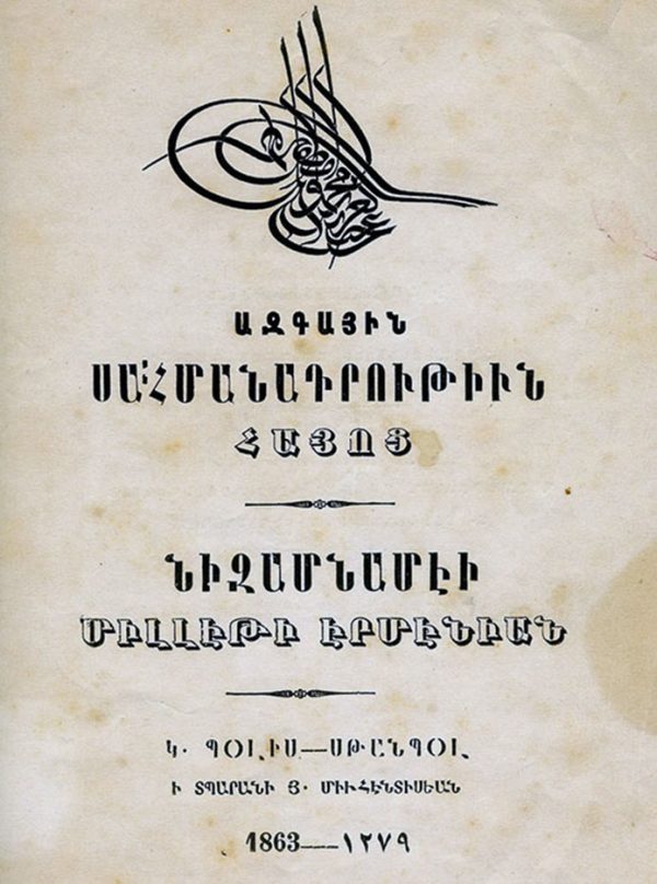 Ծանօթ. Իբրեւ Ա. բաժին՝ բացատրական այս նոր յաւելուածով վերստին հրատարակութեան համար մամուլին կը յանձնեմ յօդուածս, որ լոյս տեսած էր տասը տարի առաջ՝ 150-ամեակին առիթով: Այն ատեն արձագանգ չունեցաւ: Կը կարծեմ, թէ ԱՅԺՄԷԱԿԱՆ է, որ հայ հանրութիւնը, պատասխանատու դիրքի վրայ թէ պարզ ազգային, իրազեկուի Ազգային սահմանադրութեան գոյութեան եւ անոր ոգիին, լուսաբանուի, որ Ազգային սահմանադրութեան դրոյթներով մեր եկեղեցին տարբեր է մեզ շրջապատող միւս եկեղեցիներէն, համայնքային իր գործերը կը վարէ ան եկեղեցական ու աշխարհական ընտրեալ պատասխանատուներու համերաշխ գործակցութեամբ եւ փոխադարձ յարգանքով: Անբնական պիտի ըլլար արդէն, եթէ համայնքի պատասխանատուութեան մասնակից չդառնար աշխարհականը, քանի որ այս երկուքը՝ աշխարհական թէ եկեղեցական կ‘առաջնորդուին ազգային նոյն նպատակներէ եւ այս երկուքի գործակցութեան հանգամանքին շնորհիւն է , որ մեր եկեղեցիին կու տայ նոր գաղափարներ ընկալելու ընդունակ նկարագիր, ինչ որ մեր հպարտութիւնն է կամ պէտք է ըլլայ՝ հաւասարապէս աշխարհականներուս եւ եկեղեցականներուն համար…: (Երոսաղէմն է միայն, որ կը շարունակէ կղերապետական զարտուղի ու խնդրայարոյց ընթացքը, ինչ որ կոտտացող վէրքի մը պէս կը մնայ բաց ու քննելի խոշոր օրակարգ մը՝ մեր եկեղեցւոյ ծոցին մէջ):