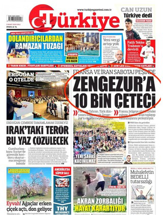 Թրքական իշխանամերձ «Թիւրքիյէ» թերթը վերոնշեալ խորագրով խիստ ծանրակշիռ ու այլապէս մտահոգիչ զրպարտութիւններ կ՛ընէ Հայաստանի հասցէին, բաժին հանելով նաեւ Ֆրանսային, Իրանին, Հնդկաստանին եւ քիւրտերուն, ակնյայտօրէն միակ նպատակ ունենալով ստեղծել գրգռութիւն եւ Ալիեւի առջեւ ճամբայ հարթել՝ Սիւնիքի վրայ Ատրպէյճանի այնքան ցանկացած յարձակման համար։