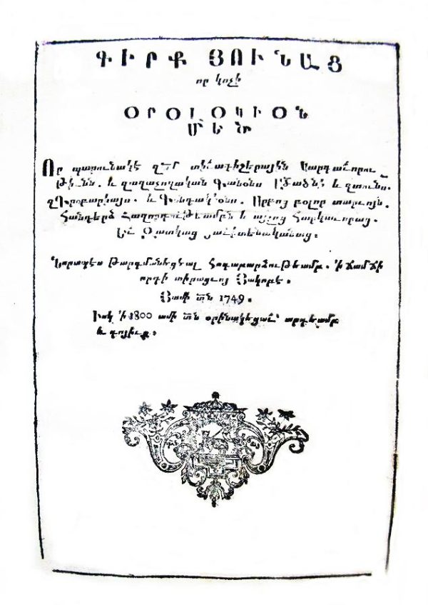 Կարելի է ասել, որ XVIII-XIX դ. սկզբում Ակնի հայ հոռոմ համայնքների ծաղկուն շրջանն էր, երբ եկեղեցաշինությունից բացի, զարկ էր տրվում նրանց մեջ հոգևոր ու մտավոր մակարդակի բարձրացմանը: Այսպես, 1800 թ. Կոստանդնուպոլսում լույս է տեսել Ուղղափառ Եկեղեցու Ժամագրքի (հուն.` «Օրոլո՛գիոն») հայերեն թարգմանությունը, որը 1749-1757 թթ. իրականացրել էր պոլսահայ անվանի թարգմանիչ Հակոբ դպիր Ճամճիօղլին` վանքցի Հաջի Մուրադ Լազարիսի պատվերով: 1762-1767 թթ. այս թարգմանության մի ընդօրինակություն գրչագրել է Աթոս Լեռան (Հունաստան) Սբ. Դիոնիսիոսի վանքի վանական Արսենը՝ Վանքի քահանա Մարկոսի որդին: Արսենին նյութական ու բարոյական օժանդակություն է մատուցել Մարգար վանականը, հավանաբար նույն գյուղից: Ահա նրանց ձեռագիրն է, որ հիմք է ծառայել 1800 թ. պոլսյան հրատարակության համար: