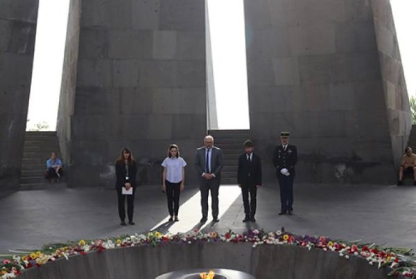 Պարոն Ռոնան Լը Գլյոն ծաղկեպսակ է դրել Հայոց ցեղասպանության զոհերի հիշատակը հավերժացնող հուշակոթողին, այնուհետև հյուրերը ծաղիկներ են դրել անմար կրակի մոտ՝ մեկ րոպե լռությամբ հարգելով Հայոց ցեղասպանության անմեղ զոհերի հիշատակը: