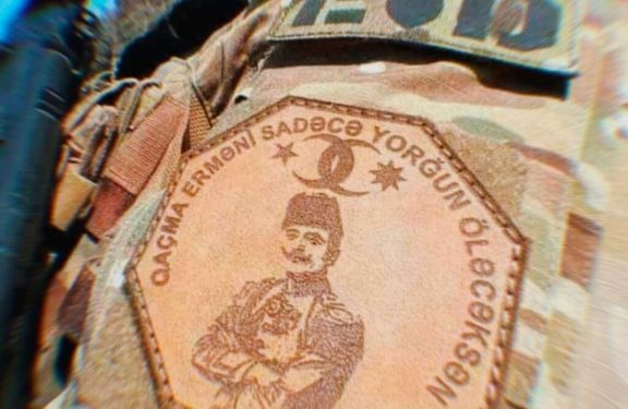 Այսպէս, կը տեղեկանանք թէ ատրպէյճանցի զինուորներու բազկանշանին վրայ գրուած է՝ «Մի՛ փախչիր հայ. (թէ ոչ՝) պիտի մեռնիս ուժասպառ»: Այլ խօսքով՝ հայը երբ հանդիպի ատրպէյճանցիին, պէտք է անմիջապէս անոր մատուցէ վիզը, եթէ չուզեր նոյն ճակատագրին արժանանալ՝ մորթուիլ, ի զուր յոգնելէ ետք։
