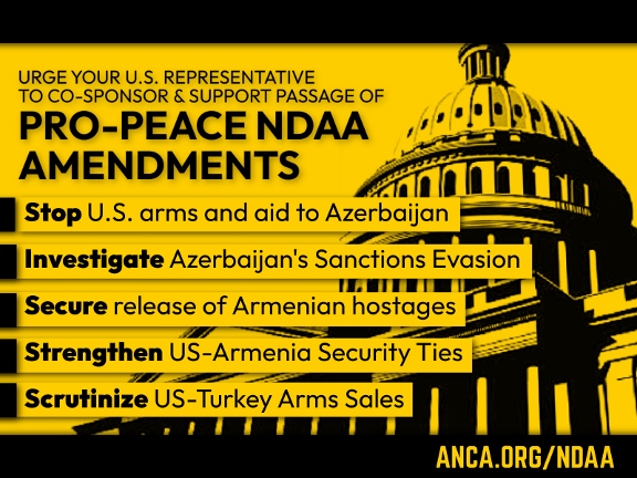 ՈՒԱՇԻՆԿԹԸՆ.- Ամերիկայի Հայ Դատի յանձնախումբը կը տեղեկացնէ, թէ 2025ի Ազգային պաշտպանութեան արտօնութիւններու օրինագիծին (NDAA) մէջ ներկայացուած յաւելուածներու միջոցաւ, կարգ մը քոնկրեսականներ կը ջանան կասեցնել Ատրպէյճանի իշխանութիւններուն տրամադրուող ամերիկեան ռազմական աջակցութիւնները։ Օրէնսդրական առաջարկներուն մէջ կան նաեւ միջոցառումներ, որոնք կը միտին Հայաստանի ինքնիշխանութիւնը եւ ապահովութիւնը երաշխաւորելու նպատակով ամերիկեան աջակցութեան ձեւաւորման, ներառեալ՝ Հայաստան հաստատուած Եւրոպական Միութեան դիտորդական առաքելութեան ամերիկեան աջակցութիւն: