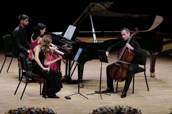 Ապա բեմը յանձնուեցաւ ջութակահար Անուշ Նիկողոսեան, թաւ ջութակահար Միքայէլ Նաւասարդեան եւ դաշնակահար Սոնա Բարսեղեանէ բաղկացող եռեակի սրտառուչ երաժշտութեան։