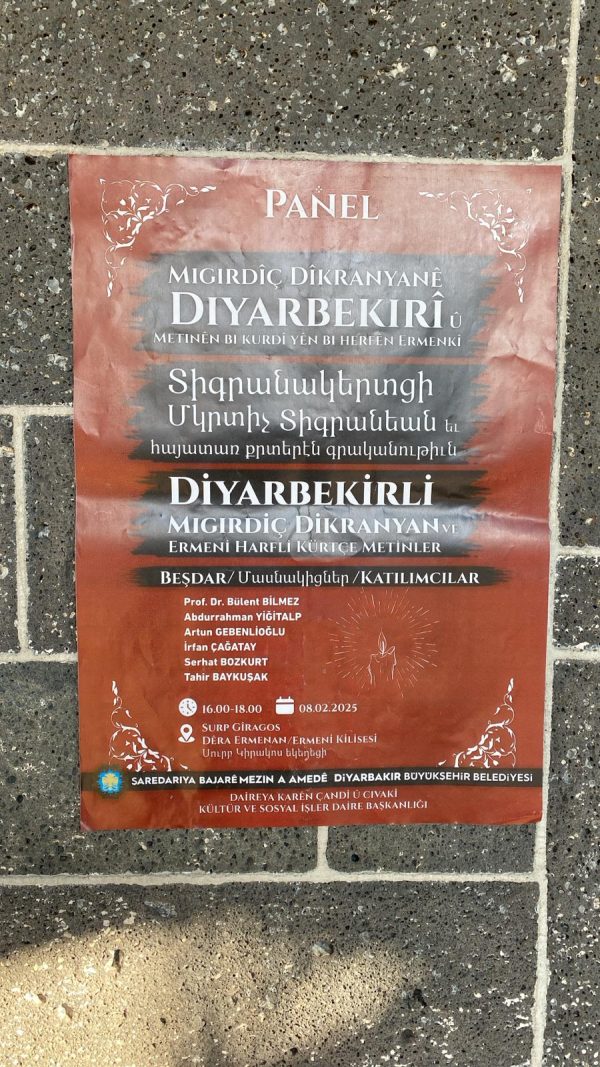 Տիգրանակերտում (Դիարբեքիրում) փետրվարի 21-ին նշվող Մայրենի լեզվի համաշխարհային օրվա կապակցությամբ հայատառ քրդերեն տեսքտերին նվիրած մի պանելային քննարկում է տեղի ունեցել։ Միջոցառումը տեղի է ունեցել Սուրբ Կիրակոս հայկական եկեղեցում։