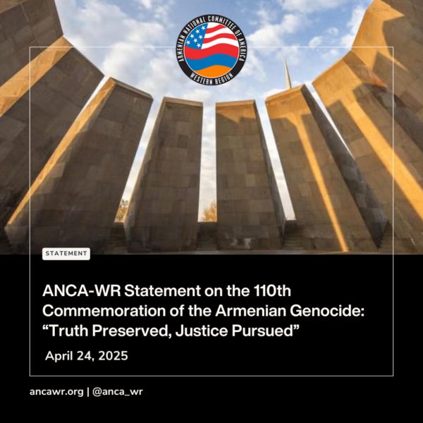 Այս Ապրիլ 24ին, երբ կը նշենք Հայոց Ցեղասպանութեան 110ամեակը, Արեւմտեան Ամերիկայի Հայ Դատի յանձնախումբը կը յարգէ թուրք-օսմանական կառավարութեան կողմէ 1915էն 1921 համակարգուած եւ ծրագրուած բնաջնջումի ենթարկուած 1.5 միլիոն հայոց անթառամ յիշատակը: