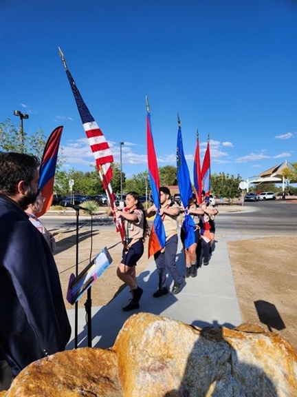 ՀՄԸՄի Լաս Վեկասի «Արցախ» մասնաճիւղի սկաուտները կատարեցին դրօշակի արարողութիւնը, որմէ ետք կատարուեցան Հայաստանի եւ Միացեալ Նահանգներու քայլերգները։