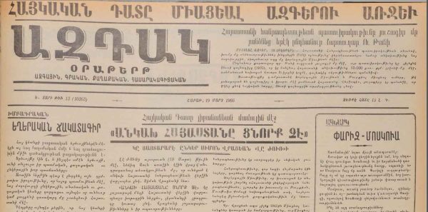Շաբաթ, 14 մայիս 1966-ին «Ազդակ» լոյս տեսած է յատուկ ձեւաչափով: Մինչ այդ չորս էջերով հրատարակուող թերթը այդ օր լոյս տեսած է ութ էջերով, որոնց երկրորդ, երրորդ, չորրորդ եւ հինգերորդ էջերուն վրայ հրատարակուած է Հայաստանի Հանրապետութեան պատուիրակութեան Միացեալ ազգերու կազմակերպութեան ներկայացուցած յուշագիրը ամբողջութեամբ: Առաջին էջով կայ յատուկ խմբագրական` «Քաղաքական աքթը» խորագիրով: Այս խմբագրականին մէջ ի միջի այլոց կը կարդանք.
