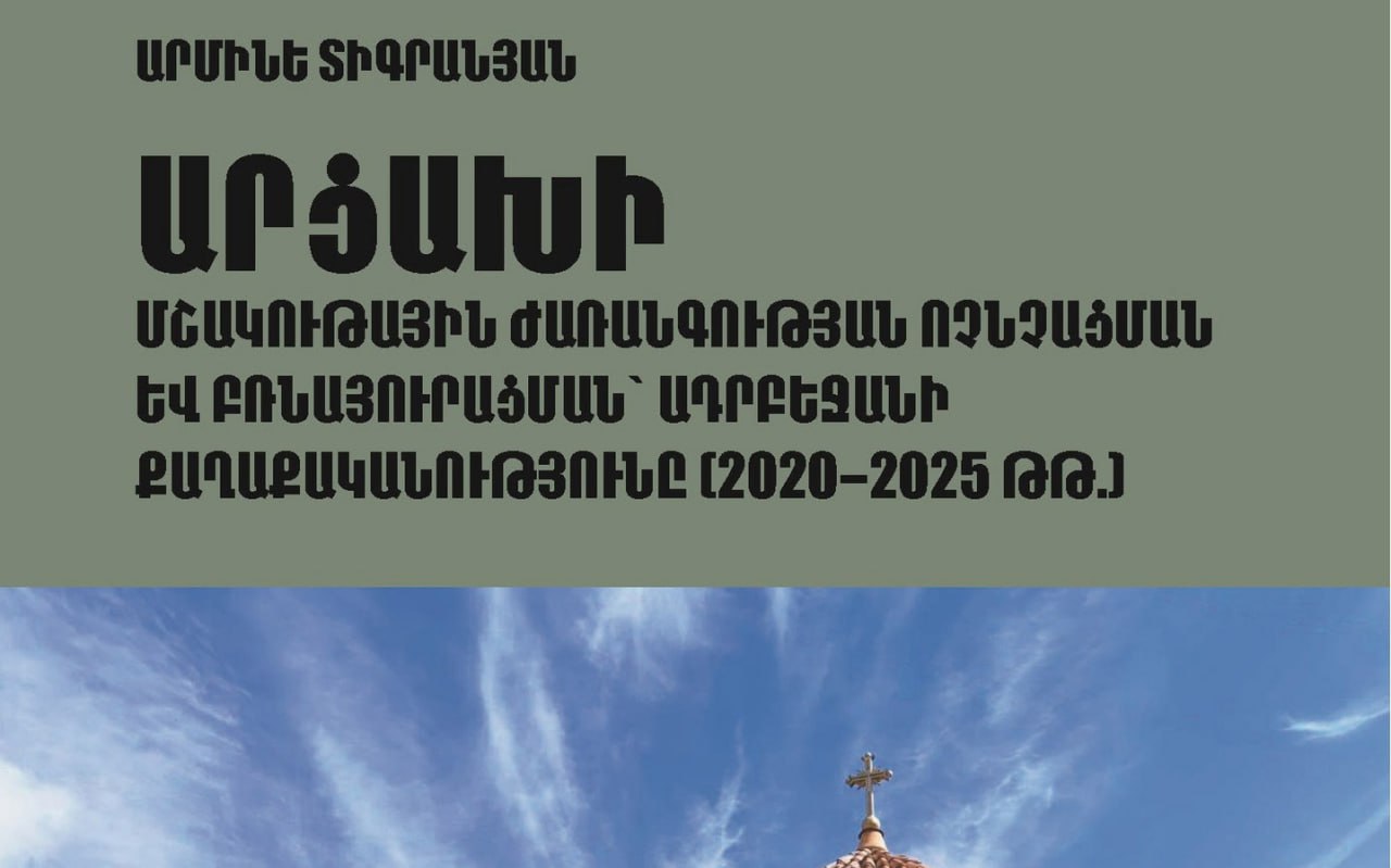 Օրհնութեամբ Ն.Ս.Օ.Տ.Տ. Գարեգին Բ․ Ամենայն Հայոց Կաթողիկոսի՝ Մայր Աթոռ Սուրբ Էջմիածնի հրատարակչութիւնը լոյս ընծայած է պ․գ․թ․ Արմինէ Տիգրանեանի «Արցախի մշակութային Ժառանգութեան ոչնչացման եւ բռնաիւրացման՝ ազրպէյճանի քաղաքականութիւնը (2020-2025 թթ․)» վերնագիրով ուսումնասիրութիւնը։ Այս մասին կը հաղորդէ «Ապառաժ»-ը։