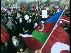 İstanbul ve Ankara Genç Atsızlar grubu ise mitingde şiddet içeren eylem yapmadı ama açtıkları pankartlarla mitinge katılan yaklaşık 30 bin kişiyi yönlendirmeye çalıştı. Grup, “Hepiniz Ermenisiniz, hepiniz piçsiniz”, “Ermeniden boşalacaq o zeherli qanın yerini dolduracaq temiz qan, Anadolu Türkünün Azerbaycan’la quracağı asil damarında mövcuddur “şeklinde nefret içeren pankartlar taşıdı.