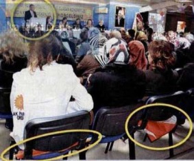 Ordu’da düzenlenen AK Parti Kadın Kolları 3. Olağan Kongresi’ne katılan AK Parti’li kadınlar salonda dağıtılan Türk bayraklarını koyacak yer bulamayınca, çözümü bayrakların üstüne oturmakta buldular. Kimisi ise bayrakları yere koymayı tercih etti.