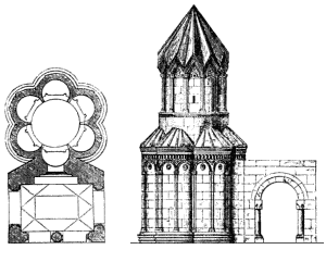 Küçük, çok apsisli ve merkezi planlı kiliselere Ermeni mimarisinde sık rastlanmasına rağmen, bu geç dönem için sıra dışıdır. Belki de tasarımları, Türk “kümbet” türü mezarlardan