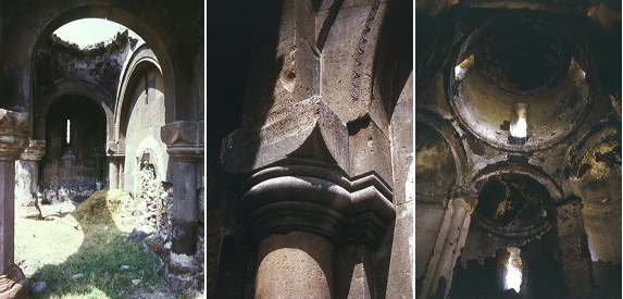 Dikdörtgen kubbeli hol şeklindeymiş, yani üç ayrı bölmeye ayrılmış üstü kubbeli orta sahını varmış. Duvarlarındaki en eski yazıt 1042 tarihlidir. Alın, içten ve dıştan yuvarlak ve yarım daire kemerlerle desteklenmiş bingilerin üzerindeymiş. Kiliseden bugüne kalanların neredeyse tamamı, sadece batı duvarının kısımlarından ibarettir.