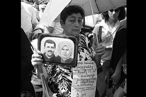 Erivan’daki yürüyüş sırasında “soykırım olmadı ki” diyenlere karşılık yaşlı bir kadın boynuna bir yazı asmış: “Onlar neredeler?” diye soruyor. “Büyükannemin iki çocuğu, iki erkek kardeşi, kocası. 5 insan.” Ve sonra elinde siyah beyaz eski bir fotoğraf bize anlatıyor: “Kars’taydılar. İdareci ‘Bir yere gitmeyin hiçbirşey olmayacak’ dedi. Ertesi gün bu aileden beş kişi öldürüldü.