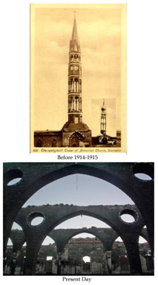 Solda görünen kule ise Surp Giragos Katedralinin eski çan kulesidir. Armenak Şişmanyan’ın büyük kardeşi Sahag Şişmanyan tarafından yapılmıştı.