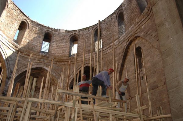Sivas Kültür Varlıkları Koruma Kurulunun onayından sonra restorasyon çalışmaları kapsamında yüklenici firma kilisenin iç kısmını temizleyerek, iç kısımda iskele kurmaya başladı.