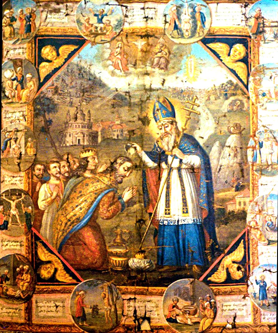Anlatıya göre, kralın kız kardeşi Khosrovidukht’un gördüğü rüya sayesinde hapisten çıkartılan Grigor Lusavoriç, kralı tedavi eder ve Tırdat imana gelir.