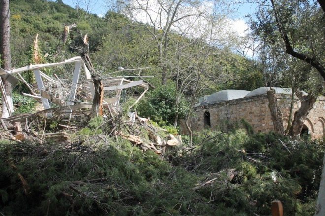 İzmir’in Selçuk ilçesindeki Meryemana Evi’nin yan tarafındaki yazlık kilisenin üzerine ağaç devrildi. Kilisenin büyük zarar gördüğü olayda maddi hasar meydana gelirken, bu sırada ziyaretçinin olmaması büyük bir şans olarak nidelendirildi.