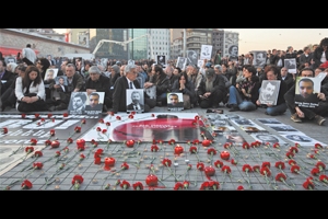 İstanbul’da, soykırım kurbanlarını anmak için düzenlenen etkinliklere katılan yüzlerce insan hakları savunucusu: 1915’te 1.5 milyon Ermeni öldürüldü; burada kayıp bir dünyayı anıyoruz. 82 yaşındaki Anahit Fransa’dan gelmiş. Neredeyse hiç durmaksızın anlatıyor: Soykırımı, kaybolan akrabalarını, geçmişini… Soyadını vermek istemiyor, küçüklükten beri bir korkuyla büyütülmüş, annesi “Ermeni olduğunu belli etme, Ermenice konuşma. Pencereden itiverirler, sonra da ‘düştü’ derler” diye tembihlermiş onu çocukken. Türkiye’ye iki haftalığına ziyarete geldiği Ermeni arkadaşı 24 Nisan anmasına gelmeye çekinmiş. “Ama Türkler nasıl bu kadar risk alıp da gelmişler” diye şaşkınlık içinde. Kütahya Mutasarrıfı Faik Ali Ozansoy’un mezarı başındaki anma için “Orada Türkleri görünce neredeyse ağlayacaktım” diyor.