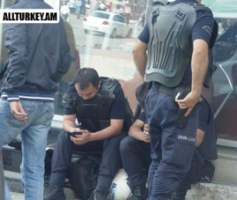 Kalabalığın buradan Sanat Sokağı’na yürümek istemesi üzerine çevrede yoğun güvenlik önlemi alan polis, yürüyüş için izin alınmadığı gerekçesiyle kalabalıktan dağılmalarını istedi.