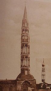 Surp Giragos Kilisesinin Sahag Şişmanyan tarafından yapılan eski çan kulesi 1913 yılındaAvak Şapat haftasında düşen bir yıldırım sonucu yıkılır. Aynı yıl üç kuşak mimari usta olanDavid Gazaryan tarafından gotik usülde görkemli sekizgen bir çan kulesi inşa edilir Surp Giragos’a.