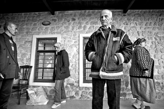 Beni ayağa kalkarak karşılayan hüzünlü beyefendi Marc Chagall’ın tablolarındaki ince uzun yüzlü, derin bakışlı erkekleri anımsatıyor. Movses Arabian ve kızkardeşi Marta Arabian, kışı Lazkiye’de yazı Kesab’da geçiren ve birlikte yaşayan iki kardeş. Sürgün yolunda kaybolan Marta Arabian’ın ilaçlarına muadil aranıyor. Başı döndüğü için elinde bir baston var sürekli. Bir ağaç dalını anımsatan o bastonu için “Kesab’dan getirdim. Yaslanıyorum ki burada düşmeyeyim” diyor. Dünyanın en güzel ifadelerinden birinin sahibi Movses Arabian ise “Ermenistan ve ABD’de akrabalarımız var. Beni bu saç sakalla görmelerini istemem” diyerek sadece arkadan fotoğraflanmayı kabul ediyor. İki kardeş de durumlarının ne olacağı belli olana kadar protesto olarak en eski kıyafetleri ile durmaya karar vermişler.