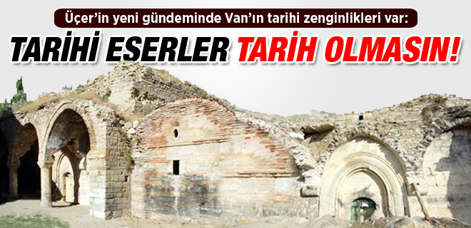 Üçer’in diğer bir önergesi ise harabe haline gelen kiliseler oldu. Üçer özelikle Meryem Ana kilesesinin kaderine terkedildiğine vurgu yaparak, Van’daki kiliseler ile ilgili şu sözlere yer verdi; “Van ili merkezine 10 km. uzaklıktaki Yukarı Bakraçlı Köyü’nde, Erek (Varag) Dağı eteklerinde bulunan ve yörenin en zengin manastırı olan Varagavank Manastırı (Yedi Kilise Manastırı); yedi ayrı kiliseden (Azize Sophia Kilisesi, Aziz Yahya Kilisesi, Meryem Ana Kilisesi, Aziz Kevork Jamatunu, Kutsal Seal Şapeli, Kutsal Haç Kilisesi, Aziz Sion Kilisesi) meydana gelmiştir. Bu yapılar değişik zamanlarda manastıra eklenmiştir. Manastırı Vaspurakan Kralı Senekerim-Hovhannes (1003–1022) yaptırmıştır. Varagavank Manastırı’nın en eski kilisesi St. Sophia Kilisesi’dir. Güneyde bulunan bu kiliseyi Senekerim’in eşi Khoşuş 981 yılında yaptırmıştır. Daha sonra St. Sophia Kilisesi’nin kuzey duvarına ikinci kilise olarak Aziz Yuhanna Kilisesi eklenmiştir. Manastırın ikinci grubunda bulunan kiliselerden ana kiliseyi, Kutsal Meryem adına 1003–1021 yılları arasında yapılan kilise oluşturmaktadır. Bu kilisenin Senekerim tarafından yaptırıldığı sanılmakta olup, 1648 depreminde zarar görmüştür. Ermeni mimarisinde Azize Hripsime Tipi olarak isimlendirilen bu kilise kaba moloz taştan yapılmıştır. Batı cephesinin ortasında girişi olan bölüm daha sonra yapılan büyük bir hol (jamatun) ile kapatılmıştır. Jamatunun kapısı üzerindeki bir kitabeden bu bölümün Mimar Tiratur tarafından 1648 yılında yapıldığı öğrenilmektedir. Yine Manastırın ikinci grubu yapılarından olan St. Seal Şapeli Kutsal Meryem Ana Kilisesi’nin kuzeybatısında ve ona bitişik olarak yapılmıştır. Meryem Ana Kilisesi’nden bir koridorla bu kiliseye geçilmektedir.”