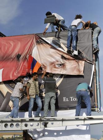 Başbakan Erdoğan’ın Sayda kentinde TİKA tarafından yaptırılan Travma ve Rehabilitasyon Hastanesi’nin açılışını yaptığı saatlerde gerçekleşen olayda, sözde Ermeni “soykırımı” ile ilgili pankartlar hazırlayan göstericiler, billboardlardaki Erdoğan posterlerini de yırttı.