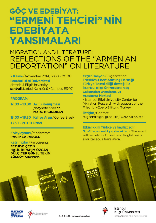 İstanbul Bilgi Üniversitesi’nin santralistanbul Kampüsü’nde 7 Kasım 2014 Cuma günü “Göç ve Edebiyat: ‘Ermeni Tehciri’nin Edebiyata Yansımaları” konulu bir panel düzenleniyor.