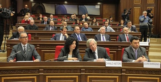 Ermenistan Meclisi Dış İlişkiler Daimi Komisyonu tarafından, “Soykırımsız bir dünya” başlığıyla düzenlenen oturuma, Uruguay Devlet Başkan Yardımcısı Danilo Astori, Avrupa Yahudi Parlamentosu Eşbaşkanı Vadim Rabinoviç, Dünya Ermenileri Kongresi Başkanı Ara Aprahamyan, Batı Ermenileri Ulusal Kongresi Genel Sekreteri Sevak Artsruni, uluslararası hukuk alanında görev yapan uzman hukukçular, akademisyenler, öğretim görevlileri, Diaspora’daki Ermeni siyasi partilerinin temsilcileri ve Ermenistanlı milletvekilleri katıldı.