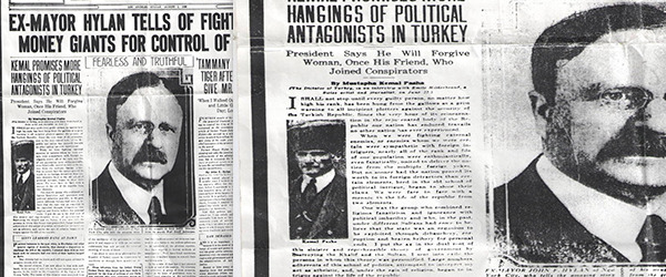 Mustafa Kemal 1926 tarihinde bir Amerikan gazetesine verdiği demeçte “Ermeni soykırımı”nı itiraf ederken, Halide Edip Adıvar’ın da kendisine suikast düzenlemek isteyen ekibin içinde olacağını ancak son anda bundan vazgeçtiğini söyledi… Los Angeles Examiner gazetesinin 1 Ağustos 1926 tarihli sayısında birinci sayfadan verilen Mustafa Kemal ile söyleşide İsviçreli sanatçı ve gazeteci Emile Hilderbrand’ın imzası yer alıyor.