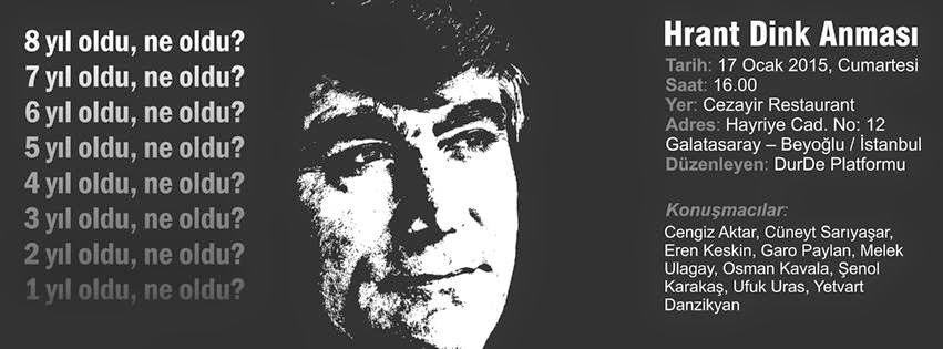 ‘Irkçılığa ve Milliyetçiliğe DurDe! Girişimi’nin düzenlediği toplantıda Dink cinayeti davasının gidişatı ve adalet arayışı konuşlacak.