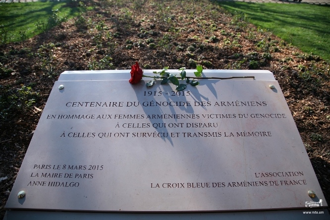 8 Mart’ta Fransız Ermeni «Mavi Haç» Birliği inisiyatifiyle Ermeni Soykırımı 100. Yıl etkinlikleri çerçevesinde ve Dünya Kadınlar Günü vesilesiyle Paris «Erivan Parkı»nda bulunan Komitas anıtı yakınında Ermeni Soykırımı kurbanı kadınlara ithaf edilen anıtın açılışı gerçekleştirildi.