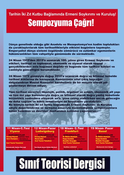 Sınıf Teorisi Dergisi Ermeni Soykırımının 100. yılında Avrupa’nın 4 farklı şehrinde sempozyumlar düzenleyecek.