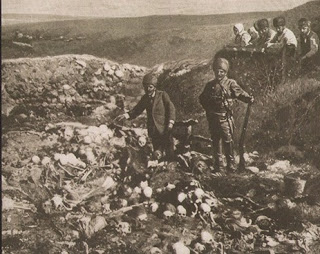 Bu fotoğrafta Türk askerler tarafından öldürülen Ermenilerin kafatasları ve kemikleri gösterilmektedir. Fotoğraf, Muş Akcan köyündeki harabe evlerden birinde çekildi. Köydeki yüzlerce erkek, kadın ve çocuğu bu eve toplayıp canlı-canlı yakmışlardır.