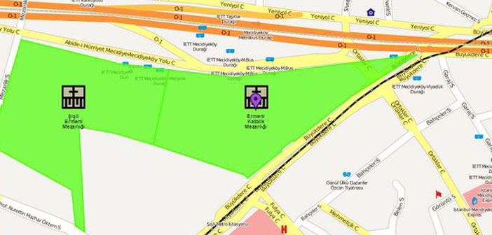 Mecidiyeköy’de şu anda üzerinde metro girişi, Mecidiyeköy Meydanı ve Dereboyu Caddesi’nin bir bölümünün bulunduğu alan, Şişli Ermeni Katolik mezarlığı arazisi sınırlarında yer alıyor. 1936 yılında devlete verilen beyannamede de yer alan arazi, kadastro sırasında, Belediye Kanunu uyarınca diğer tüm mezarlıklar gibi, İstanbul Büyükşehir Belediyesi’ne (İBB) devredildi. Tapuda sahibi Büyükşehir Belediyesi olmasına karşın Vakıf, mezarlığı fiilen kullanmaya devam etti.