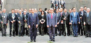 YEMEKTE dünyaca ünlü Ermeni kökenli Fransız yorumcu Charles Aznavour da vardı. Hollande yaptığı açıklamada 2012’de Anayasa Mahkemesi’nden dönen tasarının, Fransa Ermenileri arasında yarattığı rahatsızlığın farkında olduğunu söyledi. Hollande yeni tasarının ikinci kez reddedilmemesi için büyük çaba harcanacağını aksi bir durumun ‘Ermeni soykırımının inkarı’ anlamına geleceğini söyledi.