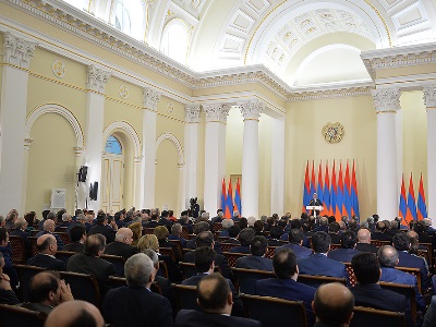 Ancak burada dış etmenlerin yerini ve rolünü net takdir etmeli. Evet hemen dışımızdaki ortam komplike, şaşkın ve sıklıkla oldukça tezat ve zorluk şu ki birçok halde bu ortam öngörülemez durumda. Bunun dışında, Ermenistan dünya ekonomik sisteminin bir parçasını oluşturmakta, öyle ki dünya piyasalarının etkisinden kaçınamaz.