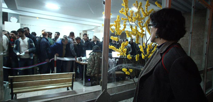 Ermenistan’dan ve Karabağ’dan ‘gönüllüler’ sınırda askerlik yapmak için merkezlere adlarını yazdırıyor. Bu merkezlerden biri de Karabağ’daki Stepanakert. Fotoğraf: Photolure