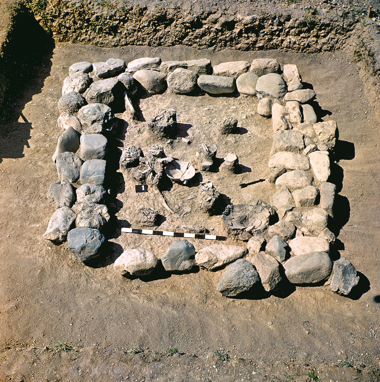 Dini yapıların iç tarafı, ateşğâhların önü, sadece Şengavit kültürüne has, bir metre çapa ulaşan, iç alanı ara duvarlarla üç kısma ayrılmış ve geometrik resimlerle süslenmiş fırınlanmış kilden hazırlanmış ocaklardan oluşmaktaydı. Bu ocakların yanında kadın, erkek ve tapılan hayvanlardan at, köpek, boğa ve koç heykelcikleri bulunmuştur.