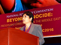 Dimejian Capitolium’da düzenlenen «Hıristiyanları Savunma» temalı konferans esnasında ″Ben, Yakın Doğu’da Beyrut’ta doğmuş, Soykırımdan kurtulmuş bir insanın torunu olarak karşınızda bulunuyorum. Halep’teki evini dini tahakkümler sebebiyle terk etmek zorunda kalan Ermeni Hıristiyan bir ailenin gelini olarak karşınızda bulunuyorum″ dedi.