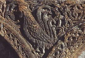 Apsisin güneyindeki şapelin kapısının üzerinde, zamanının dokumacılığına fikir verecek bir desen olarak, madalyonlar içinde mahfuz dört ejderha gösteren sıra dışı bir aynalık vardır.