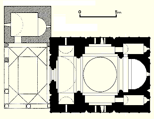 Dıştan, kubbeli dikdörtgen tasarım, Katedral’i andırır, fakat daha küçük bir ölçüttedir. İç planı farklıdır ve Ortaçağın bu geç döneminin diğer kiliselerininkiyle benzeşir. Kimi zaman “kubbeli hol” olarak adlanan tiptendir – üç bölmeye ayrılmış tek sahın, orta bölmenin üzerinde kubbe vardır.