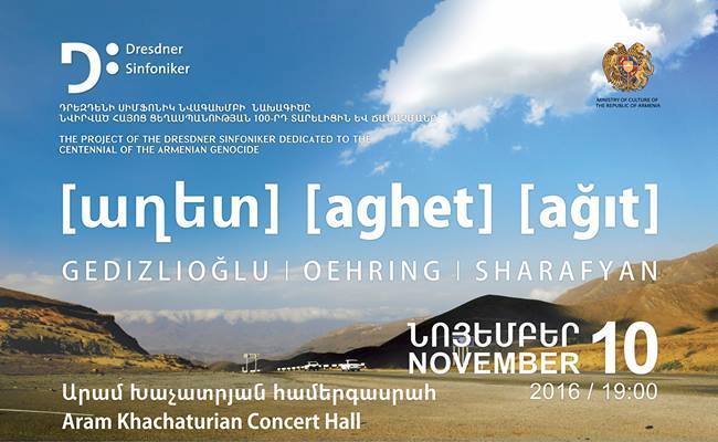Almanya, Dresden Senfoni Orkestrası tarafından Ermeni Soykırımı 100.yılı nedeniyle geçtiğimiz Nisan ayında hazırlanan ve 13 Kasım’da Almanya’nın İstanbul Başkonsolosluğu’nda gerçekleştirilecek olan “Aget” (Ağıt) adlı konser iptal edildikten sonra, konserin Ermenistan’da yapılmasına karar verildi.