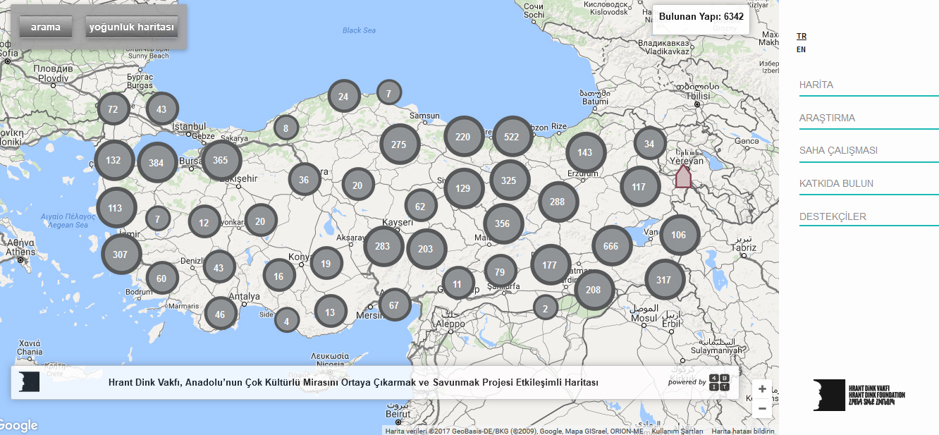 Konuya ilişkin en kapsamlı çalışmalardan biri Hrant Dink Vakfı’na ait. Türkiye’nin Kültür Varlıkları Haritası, çok sayıda kaynak üzerinde yapılan çalışmanın sonucunda önemli bir envanter yarattı. Halen devam eden çalışmada 5 bin 300 kilise tespit edildi. Kiliselerin yanı sıra, 570 şapel, 650 manastır tespit edildi. Tespit edilen bu yapıların ya bir bölümü ayakta yada halen hafızalarda. Kilisenin orada olduğu insanlar tarafından biliniyor.